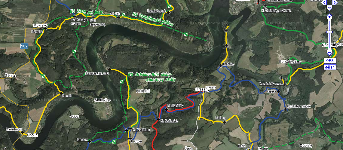 rezervace Bílé skály pod vrchem Drbákov na břehu Slapské přehradní nádrže. Toto